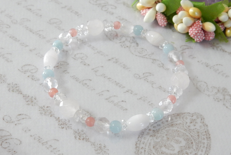 ローズクォーツとピンクマンガンカルサイトを合わせたブレスレットです。